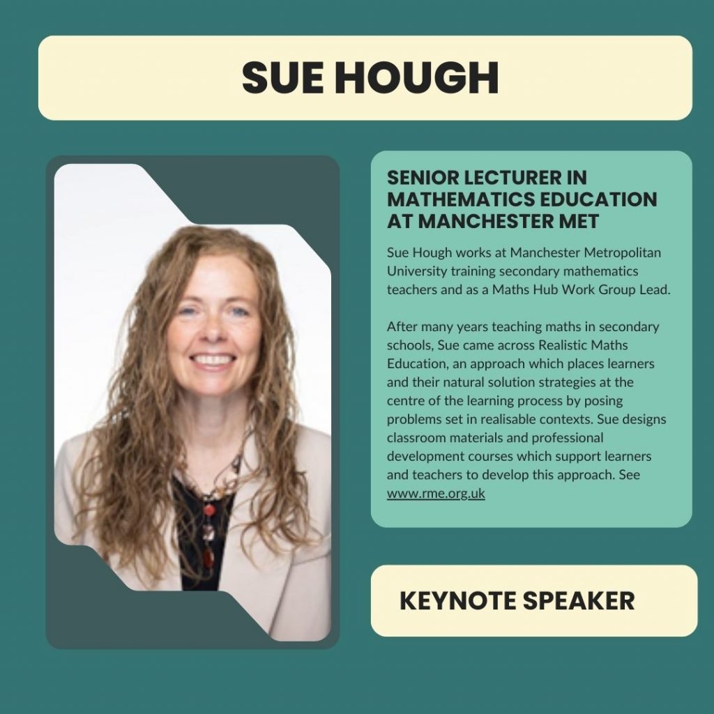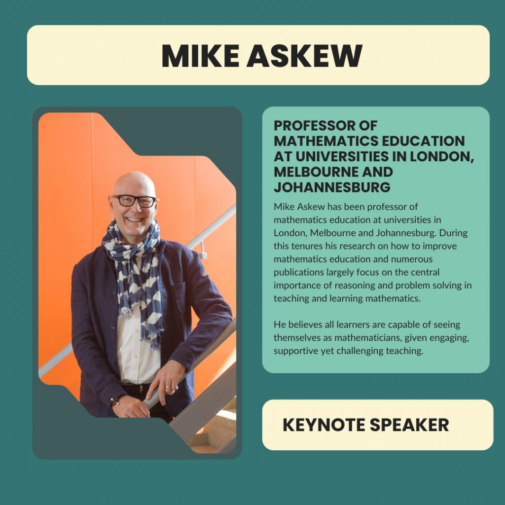 The Conference is an opportunity for teachers and leaders of Mathematics at all phases from EYFS through to Post 16 to work collaboratively. We aim to provide space for educators to think mathematically and reflect on their role as classroom practitioners and/or as professional development leads of mathematics. This year our focus is on creating equitable contexts for mathematics. The Conference will offer the chance to explore context in a range of ways, with a choice of workshops exploring a variety of contexts in addition to the three key note speakers.