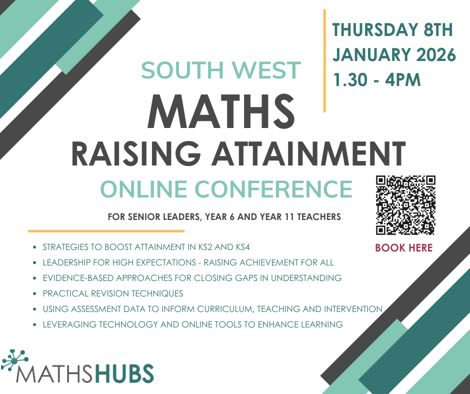 We are delighted to announce the inaugural South West Maths Attainment Conference, an online event delivered in partnership with Maths Hubs, the NCETM, and the DfE. This conference is designed to bring together teachers and school leaders from across the region to collaborate, share evidence-based practice, and strengthen strategies that support Year 6 and Year 11 students in achieving the best possible outcomes.
